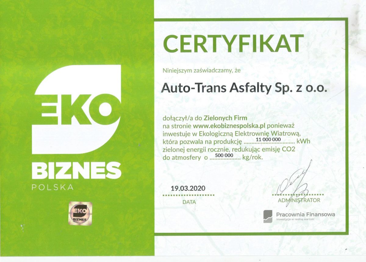 Od lutego 2019 roku Firma Auto-Trans Asfalty Sp. z o.o. znacząco poszerzyła zakres działań na zupełnie nowym dla niej obszarze tj. zainwestowała w odnawialne źródła energii. Nawiązała współpracę z Pracownią Finansową i zakupiła udziały w elektrowniach wiatrowych.